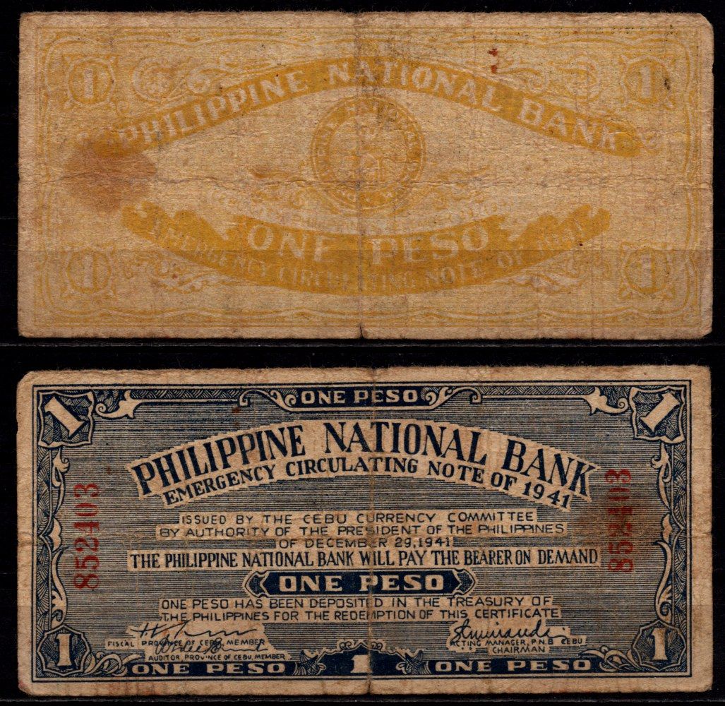 Филиппины 1 песо 1941 Pick S215 бумага 8564-13-3-1