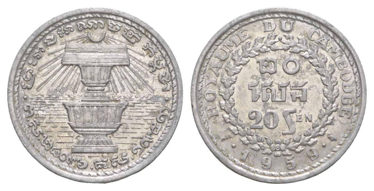 Камбоджа 20 сенов 1959 KM 55 алюминий aUNC 4633-917