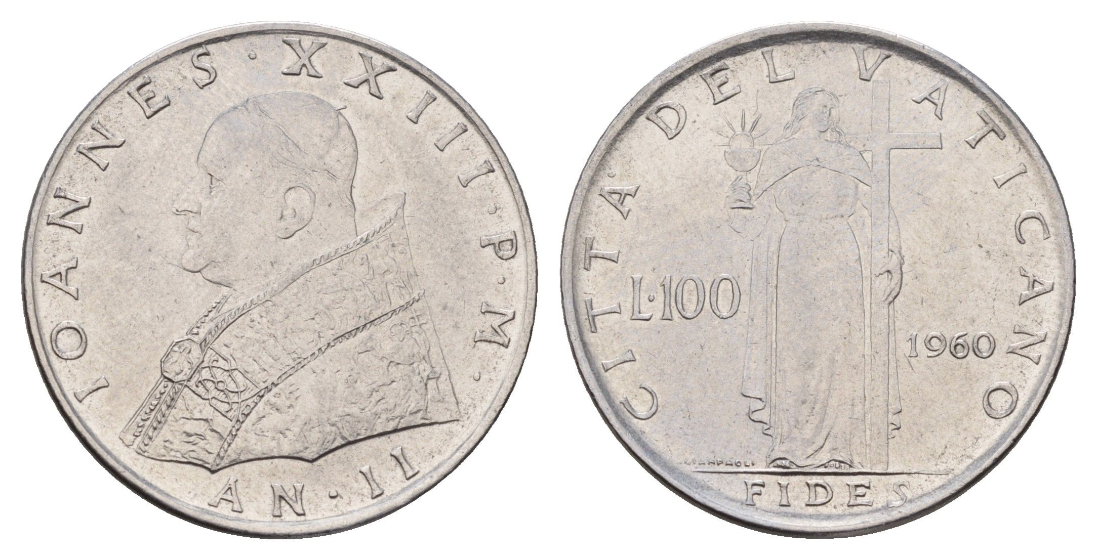 Ватикан 100 лир 1960 KM 64 нержавеющая сталь 54-2116