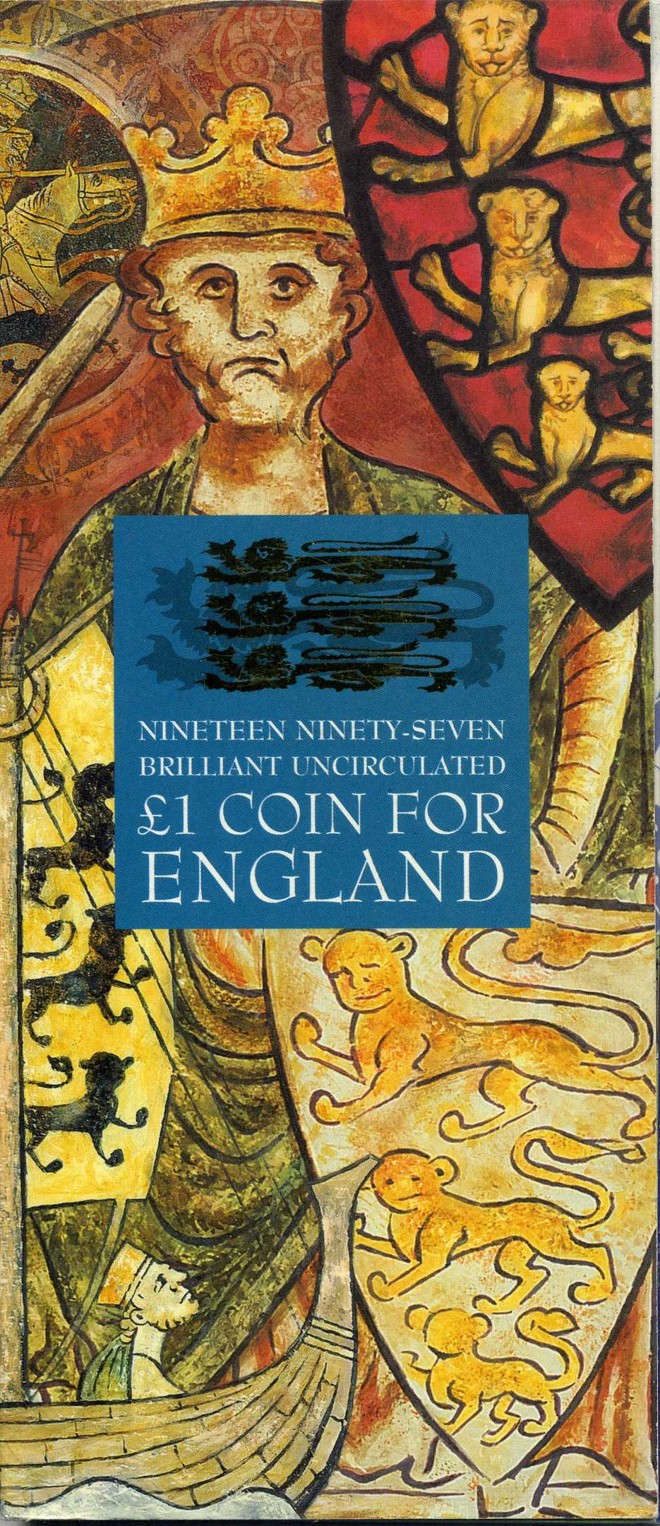 Англия 1 фунт 1997 три льва, в оригинальном картонном буклете KM 975, Spink 4340 никель латунь BUNC 3-4-4-39