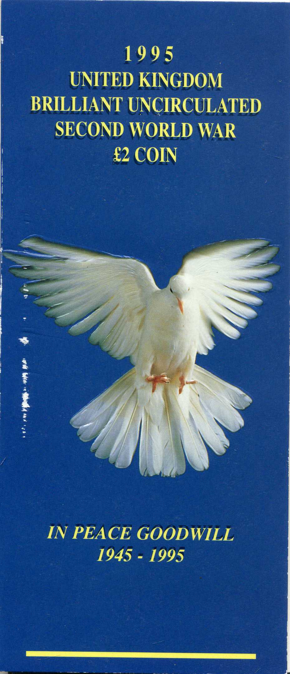 Великобритания 2 фунта 1995 Елизавета II (1952-2022), 50 лет окончанию Второй Мировой Войны, в оригинальном картонном буклете KM 970, Spink 4315 (K5) никель латунь BUNC 3-4-4-36