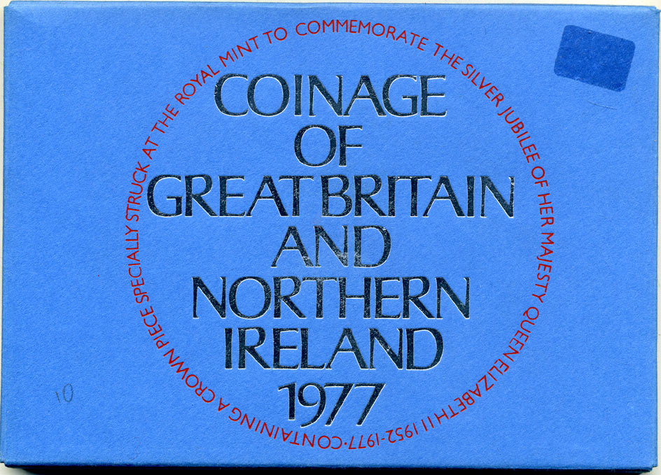 Великобритания официальный годовой набор из 7 монет (1/2, 1, 2, 5, 10, 25, 50 пенни (пенсов)) и 1 жетона монетного двора 1977 Cеребряный (25 лет правлению) юбилей царствования Елизаветы II KM PS33 (911, 912, 913, 914, 915, 916 и 920) бронза и медно-никель