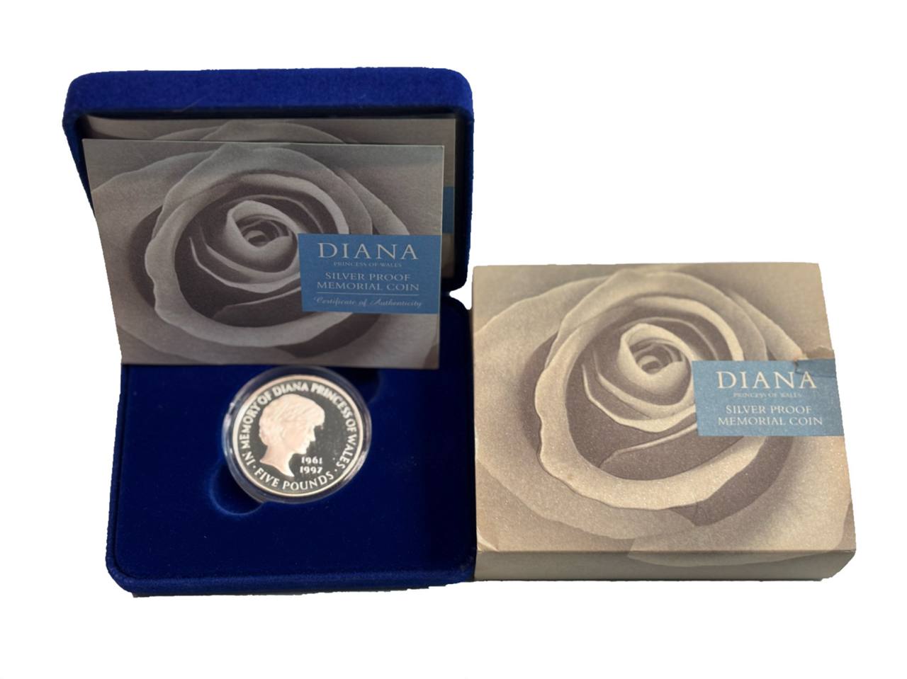 Великобритания 5 фунтов 1999 Принцесса Диана, в оригинальной упаковке, с сертификатом подлинности KM 997a, Spink L6 серебро PROOF 4-3-1-24
