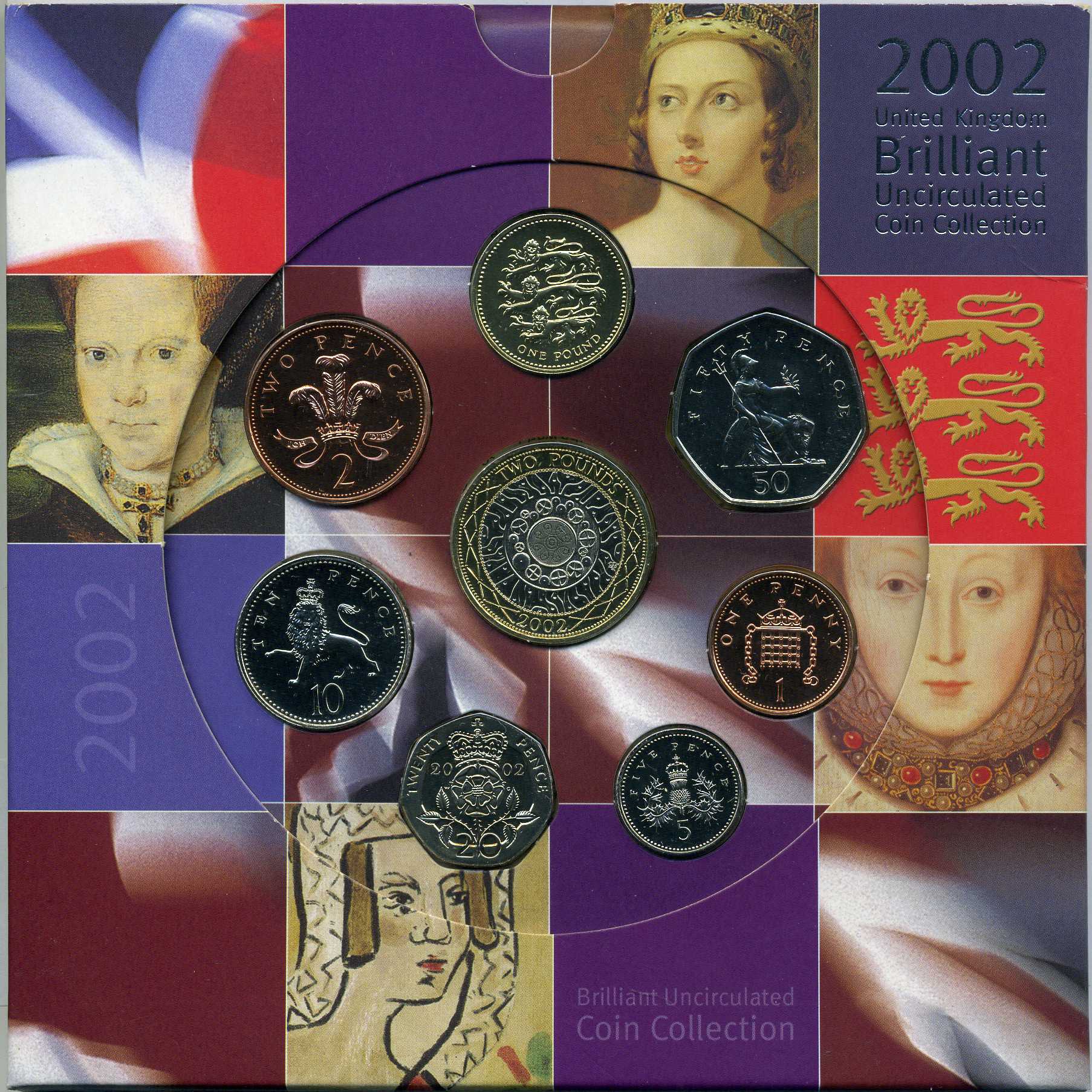 Великобритания набор из 8 монет 2002 английские королевы, в оригинальном картонном буклете BUNC 3-6-3-10