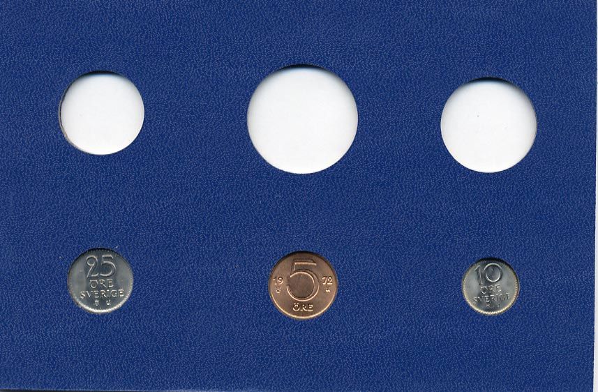 Швеция 5, 10, 25 эре 1972 Густав VI Адольф (1950-1973) в картоне набора монетного двора UNC 7-5-7-263