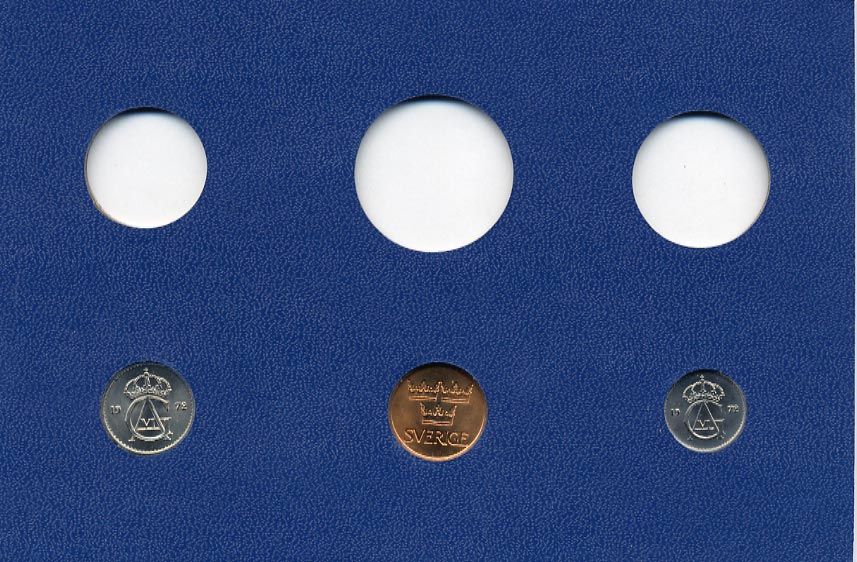 Швеция 5, 10, 25 эре 1972 Густав VI Адольф (1950-1973) в картоне набора монетного двора UNC 7-5-7-268