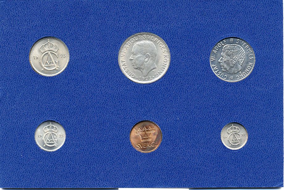 Швеция набор из 6 монет 1972 Густав VI Адольф (1950-1973) в картоне UNC 7-5-7-201