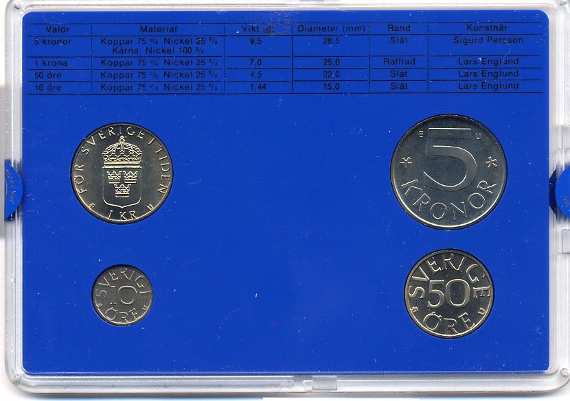 Швеция набор монетного двора из 4 монет 1985 в пластике, Карл XVI Густав (1973- ) KM MS35 UNC 4-3-7-145