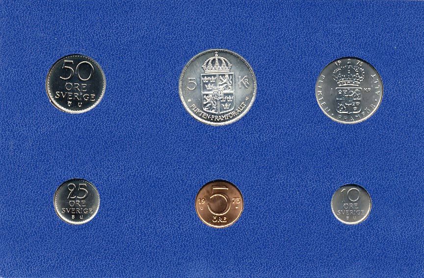 Швеция набор монетного двора из 6 монет 1973 в картоне, Густав VI Адольф (1950-1973) KM MS1 UNC 7-5-7-212