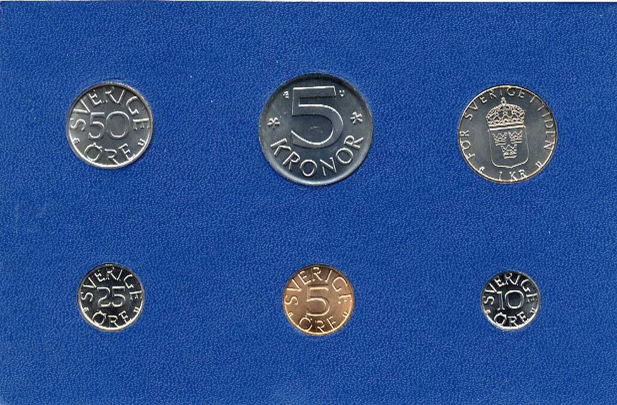 Швеция набор монетного двора из 6 монет 1976 в картоне, Карл XVI Густав (1973- ) KM MS4 UNC 7-5-7-219