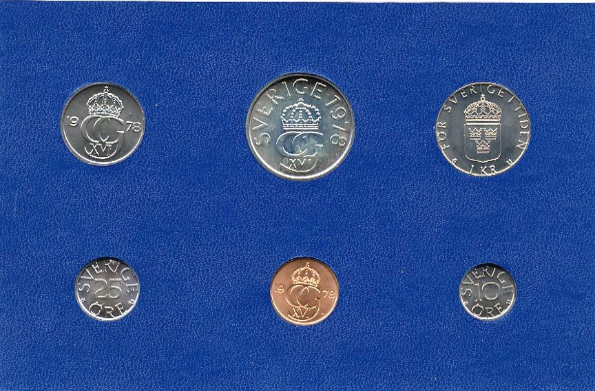 Швеция набор монетного двора из 6 монет 1978 в картоне, Карл XVI Густав (1973- ) KM MS8 UNC 7-5-7-228