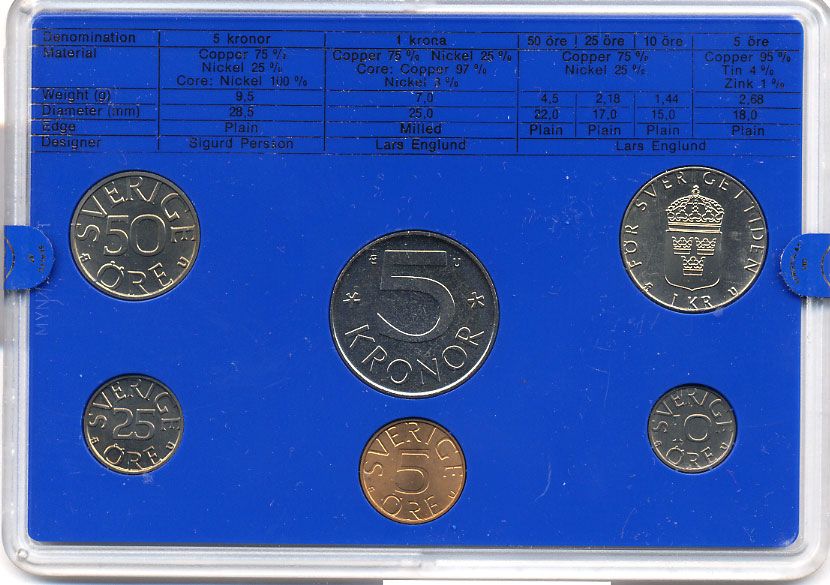 Швеция набор монетного двора из 6 монет 1980 в пластике, Карл XVI Густав (1973- ) KM MS15 UNC 4-3-6-115