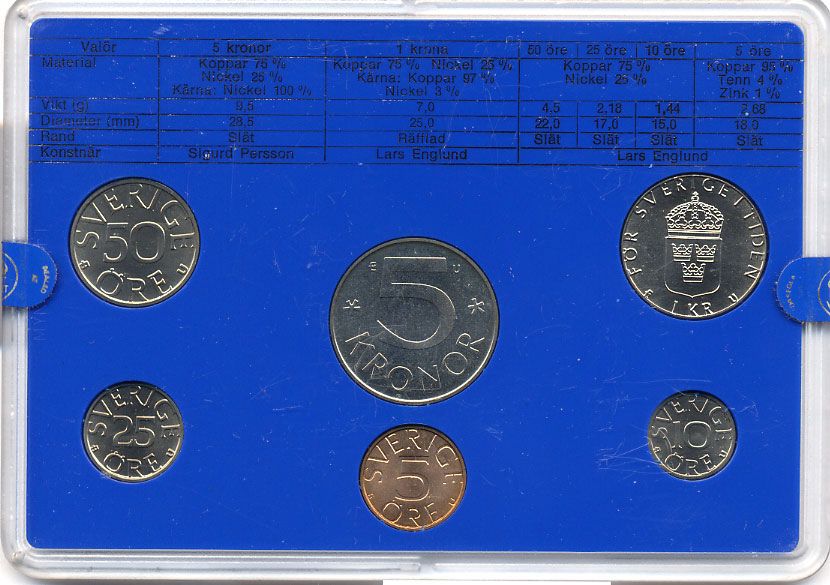 Швеция набор монетного двора из 6 монет 1981 в пластике, Карл XVI Густав (1973- ) KM MS19 UNC 7-5-7-193