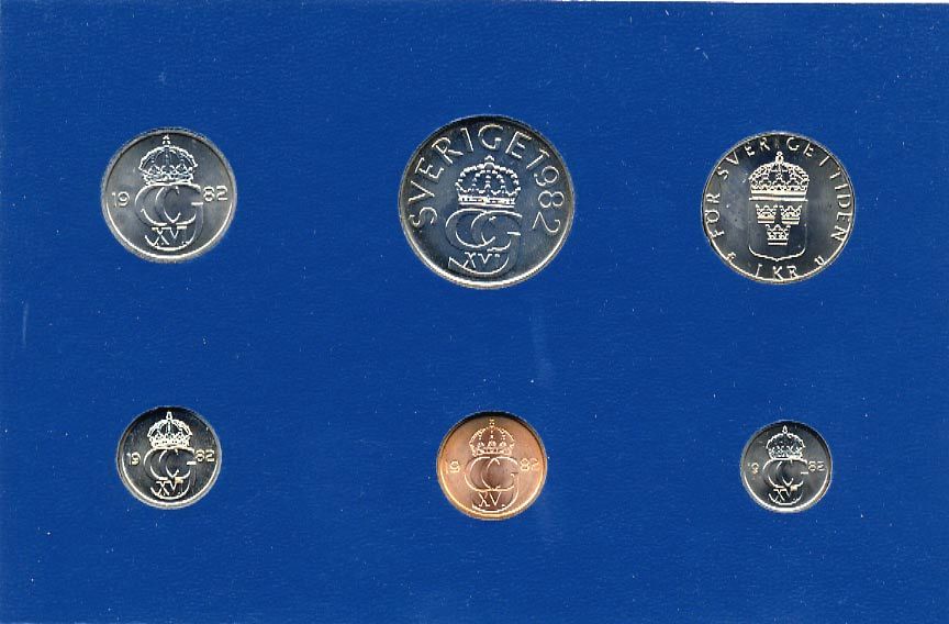 Швеция набор монетного двора из 6 монет 1982 в картоне, Карл XVI Густав (1973- ) KM MS23 UNC 7-5-7-238