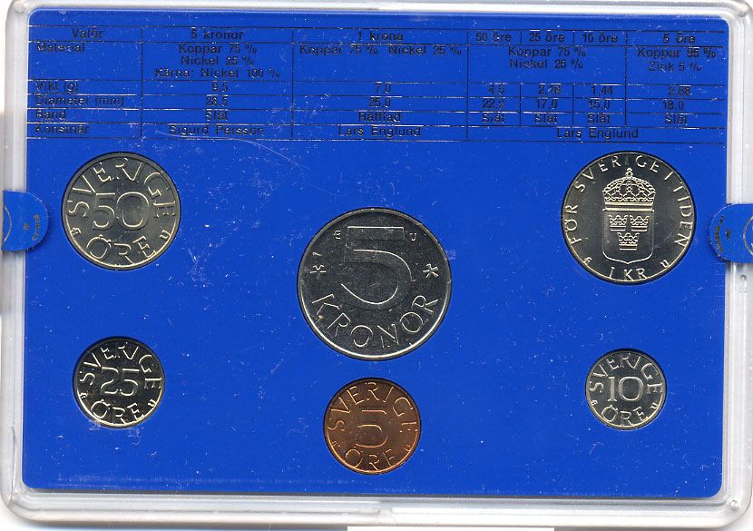 Швеция набор монетного двора из 6 монет 1982 в пластике, Карл XVI Густав (1973- ) KM MS23 UNC 5-4-2-84