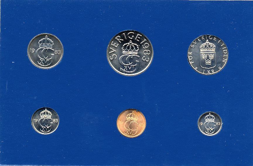 Швеция набор монетного двора из 6 монет 1983 в картоне, Карл XVI Густав (1973- ) KM MS27 UNC 7-5-7-240