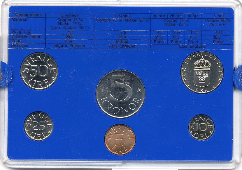 Швеция набор монетного двора из 6 монет 1983 в пластике, Карл XVI Густав (1973- ) KM MS27 UNC 5-4-2-63