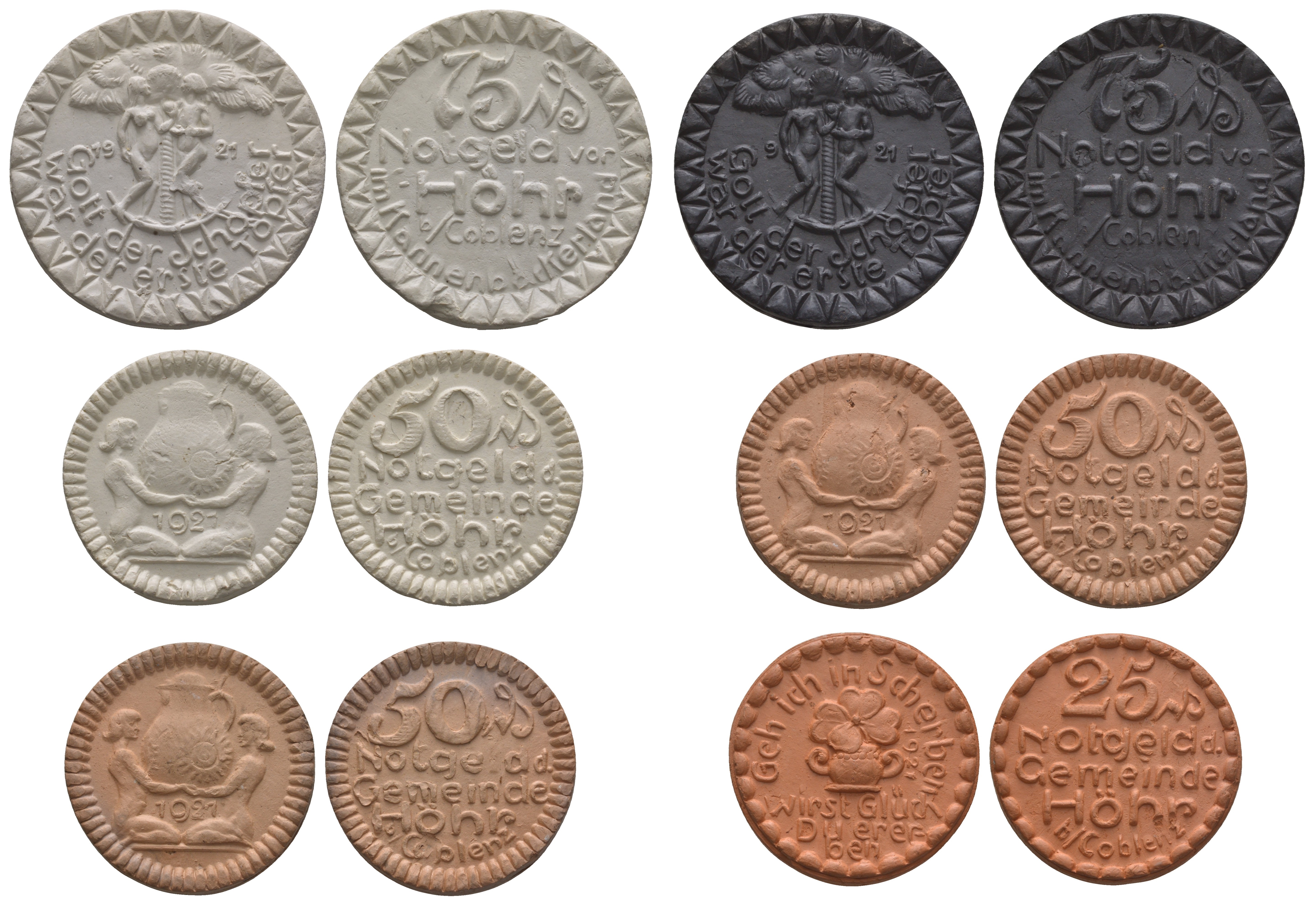 Германия (Хер (Кобленц)) набор из 6 нотгельдов (25, 50 и 75 пфеннигов) 1921 в оригинальной коробке Men05 11709.5, 11709.12, 11709.13, 11709.14, 11709.18, 11709.21 фарфор 1-4-6-10