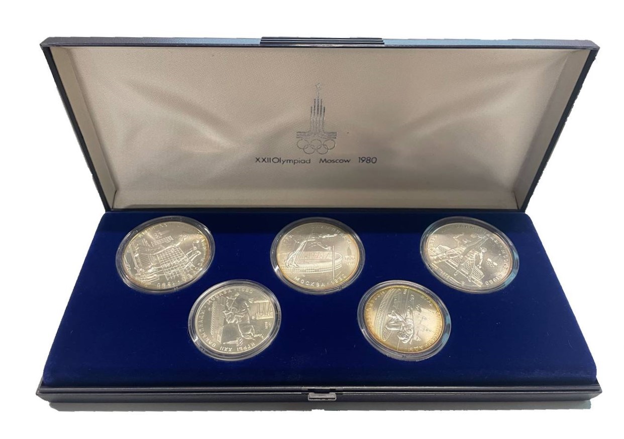 СССР набор из 5 монет номиналом 5 и 10 рублей 1978-1979 XXII летние Олимпийские игры 1980 года в Москве серебро UNC 8-2-04-19
