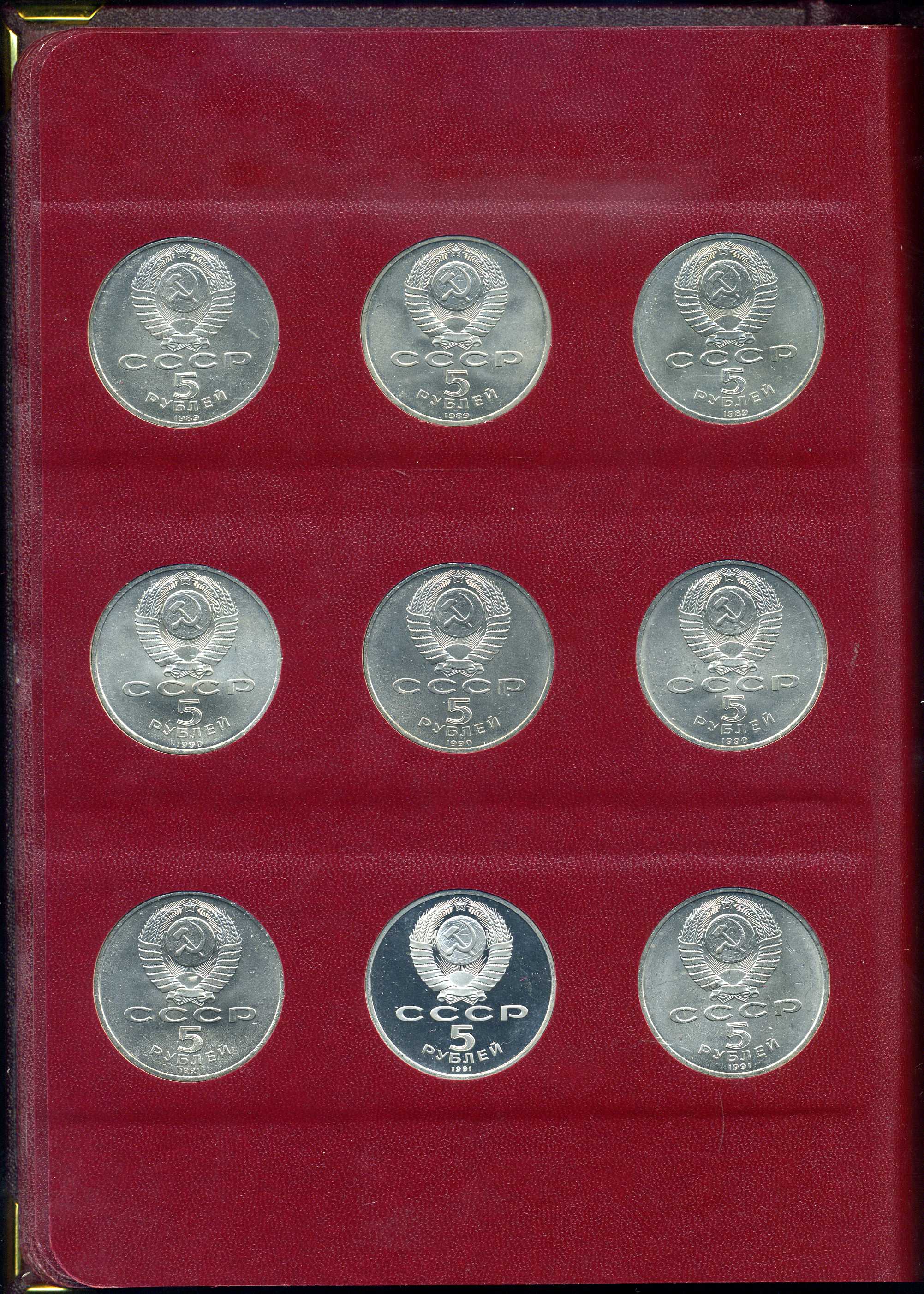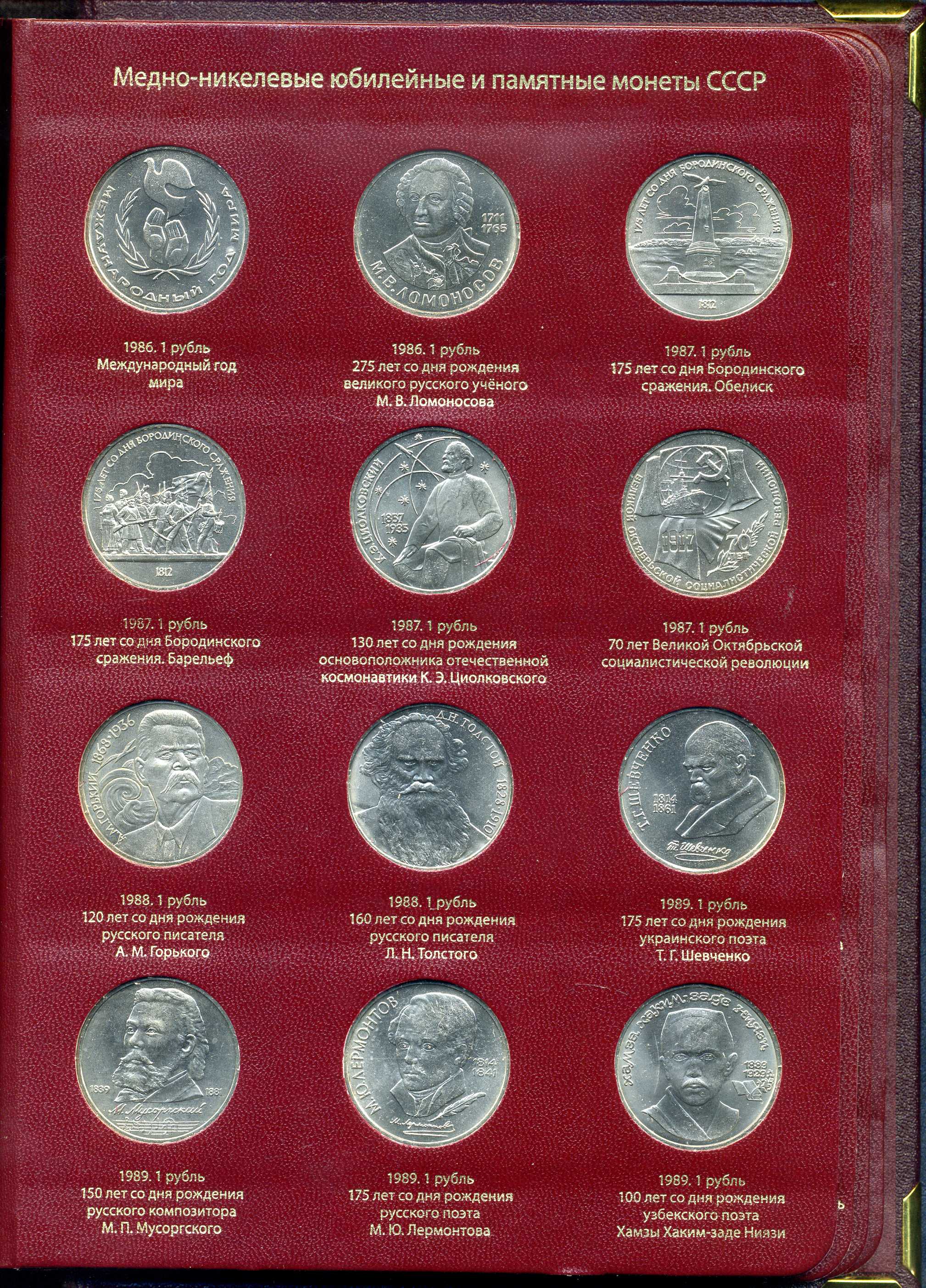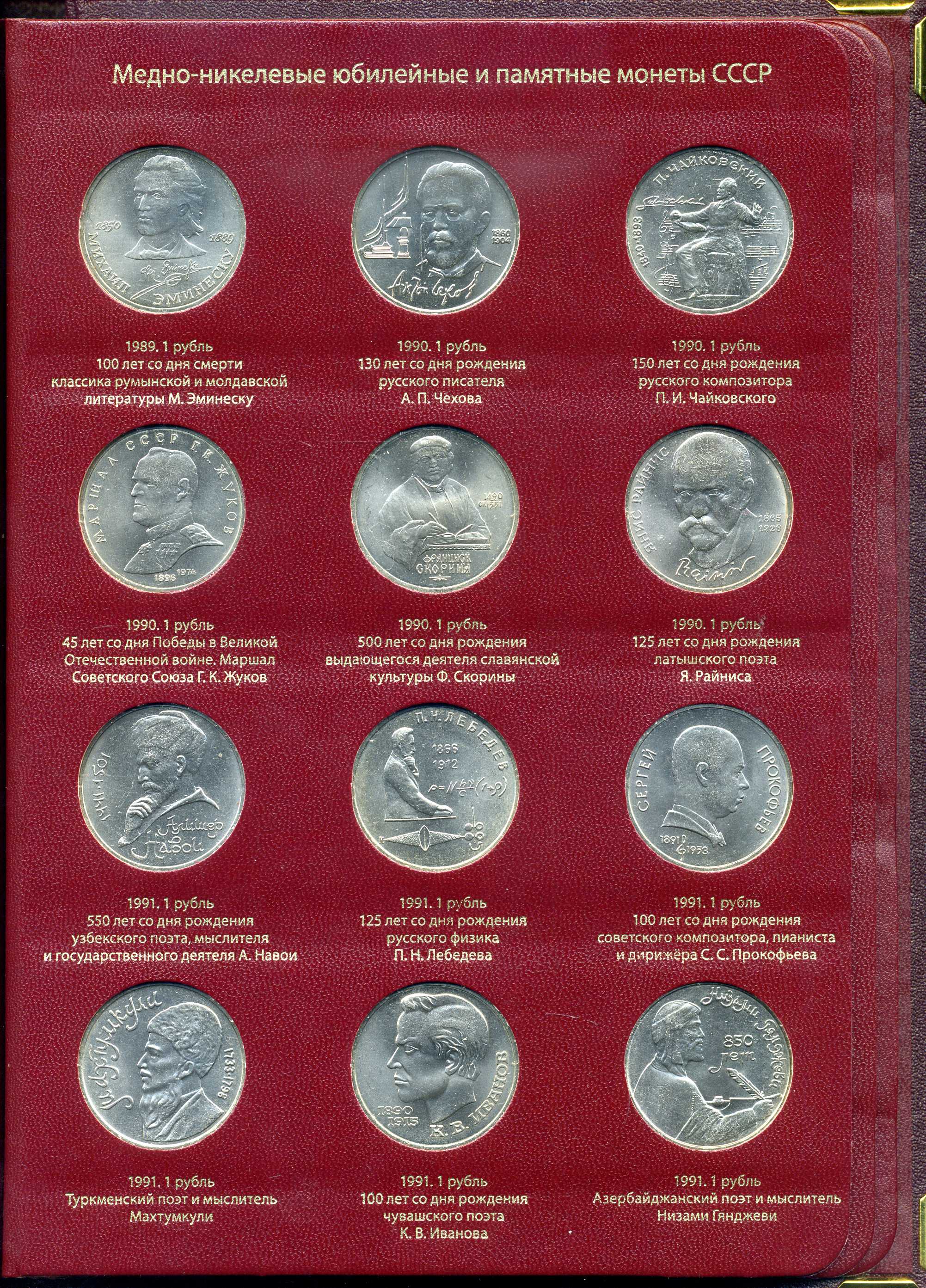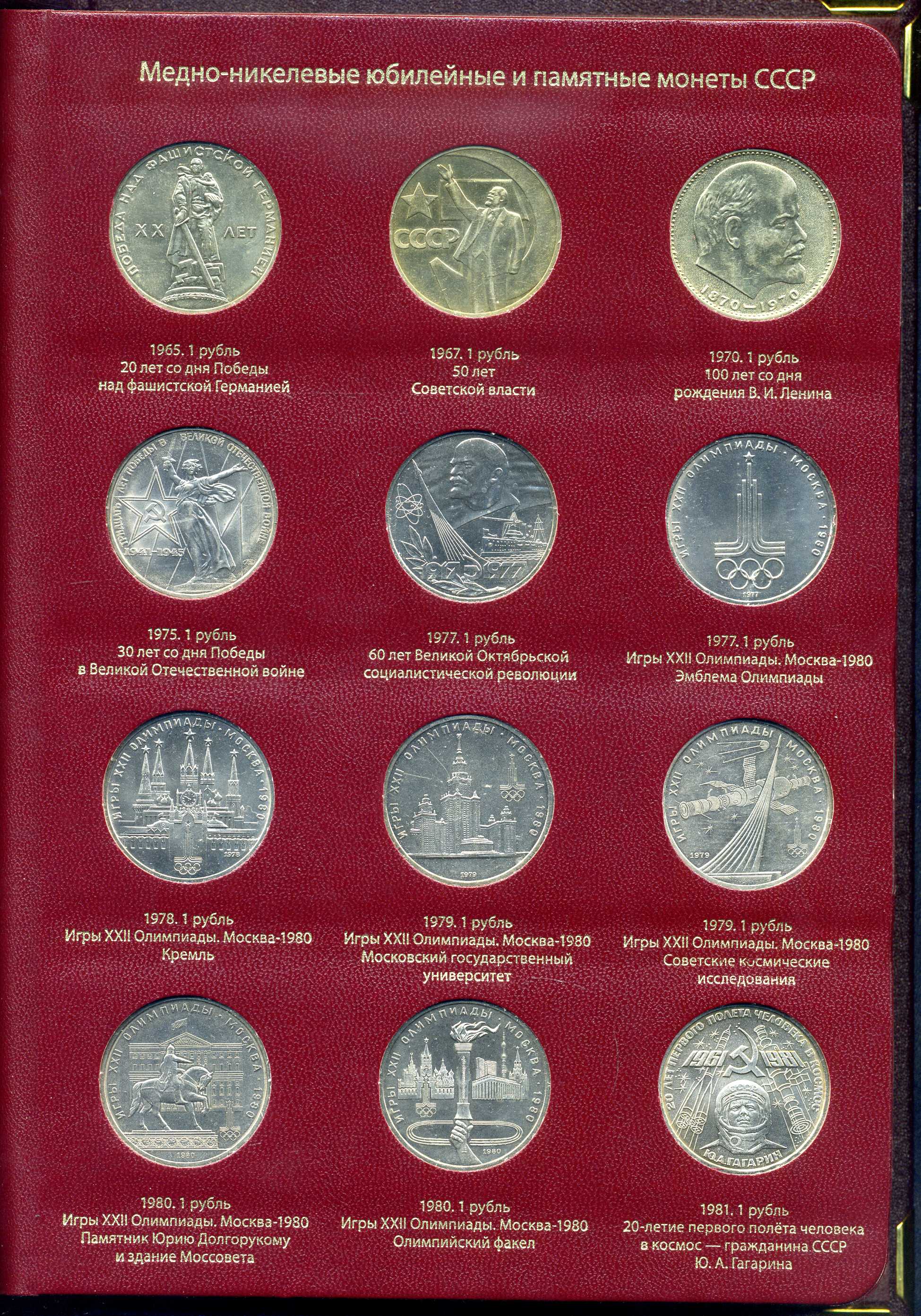 СССР набор из 64 юбилейных 1, 3 и 5 рублевых монет 1965-1991 в подарочном альбоме медно-никель 14-01-05-24
