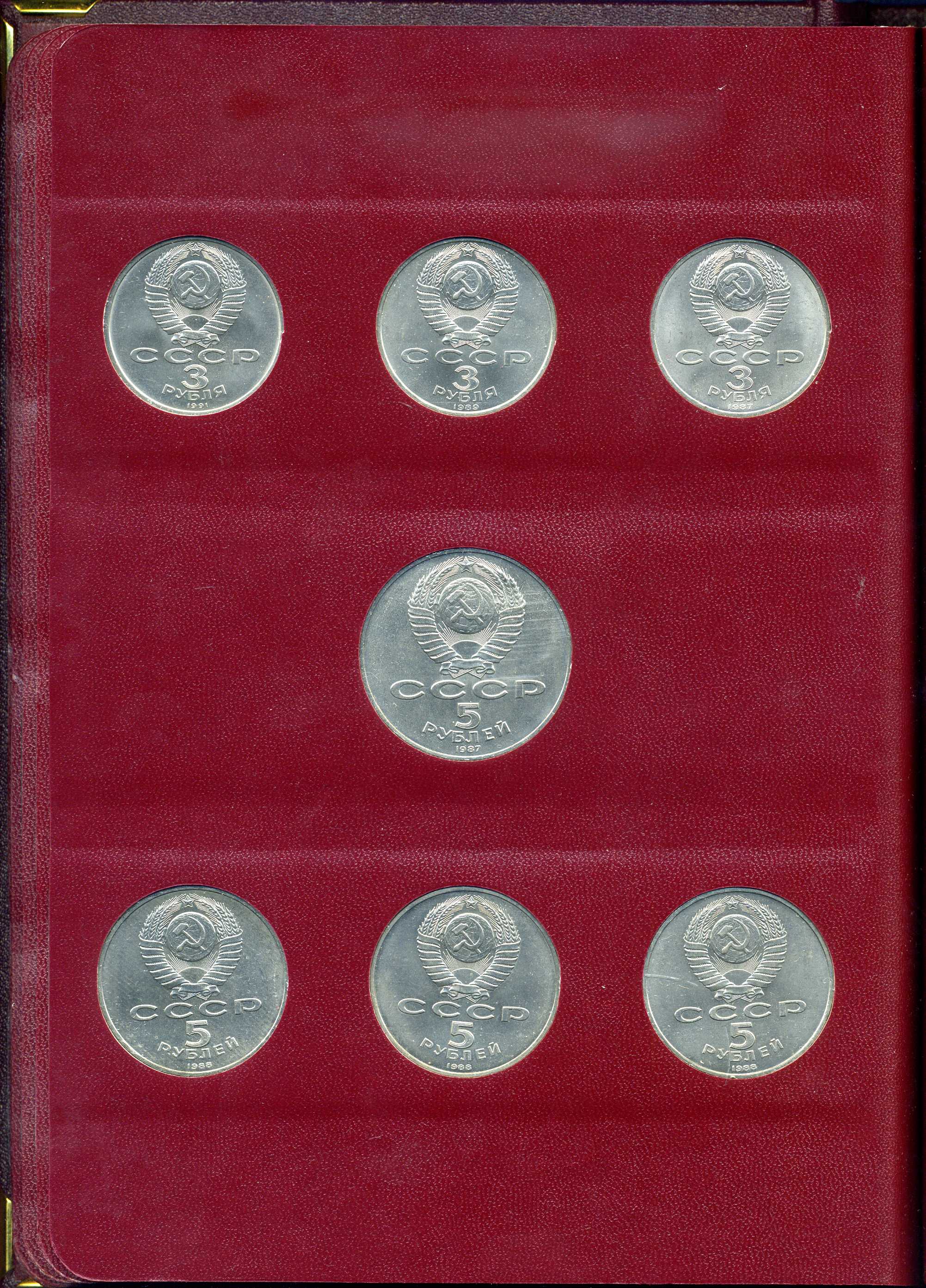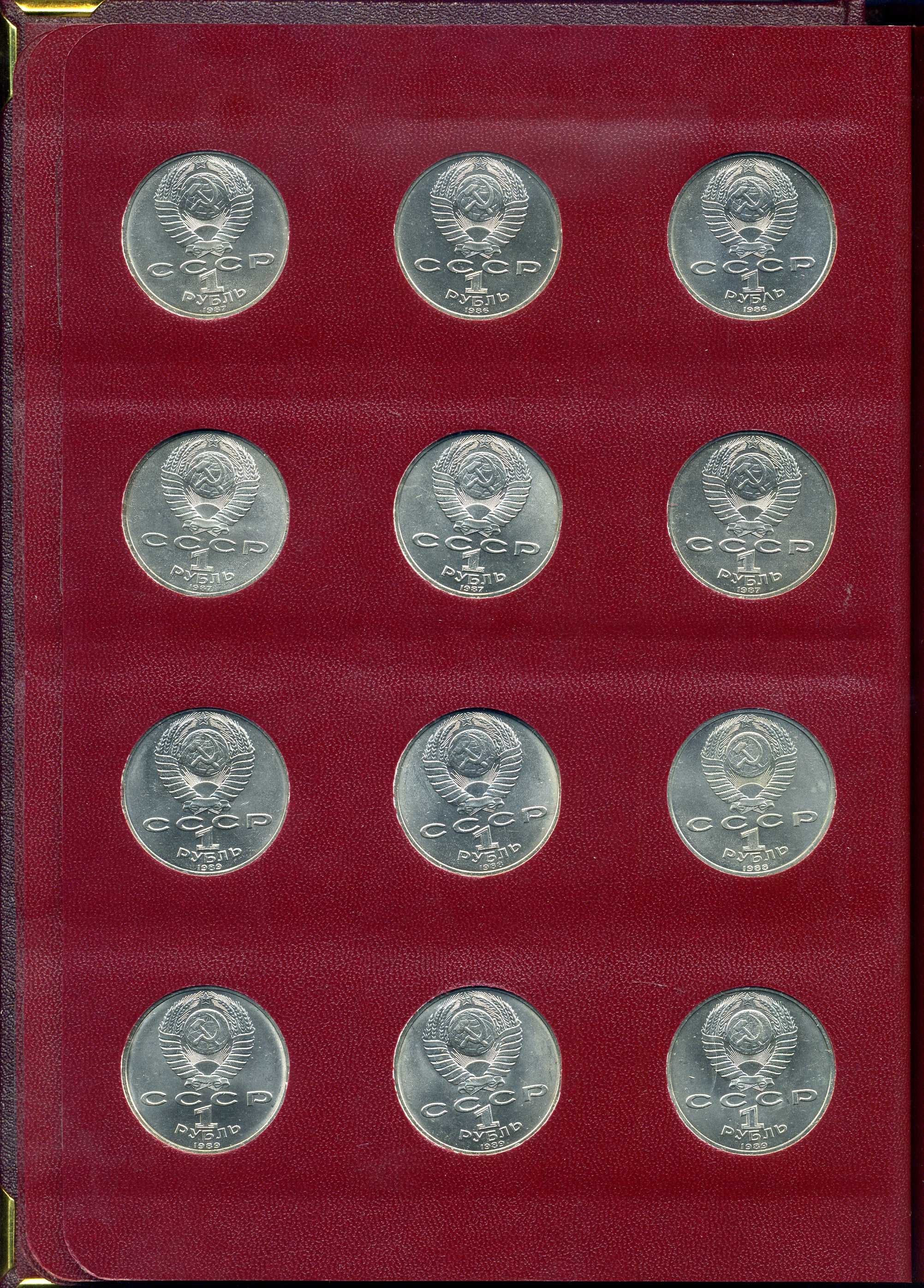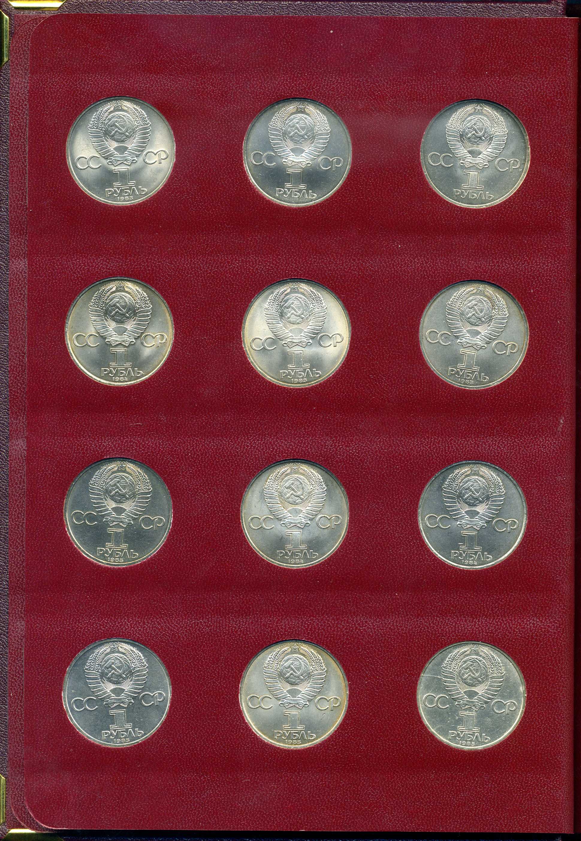 СССР набор из 64 юбилейных 1, 3 и 5 рублевых монет 1965-1991 в подарочном альбоме медно-никель 00-00