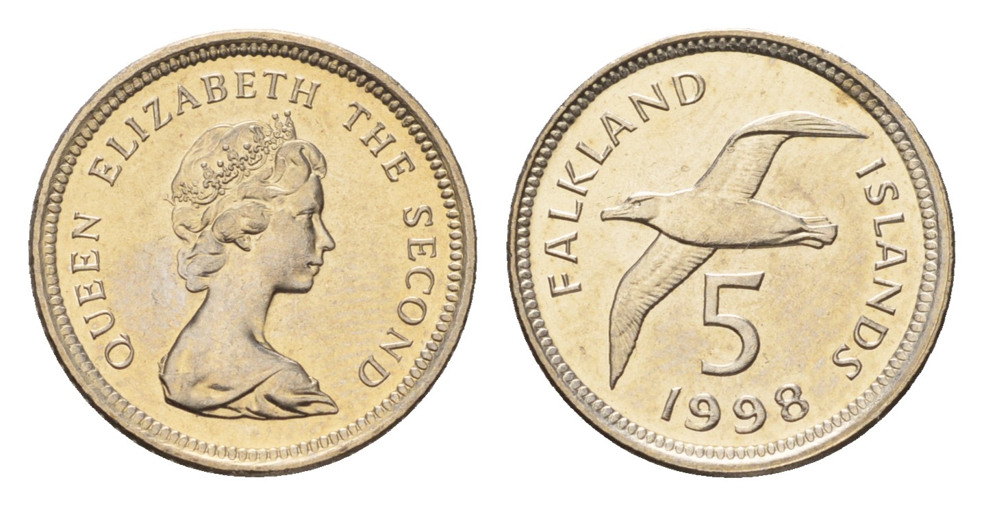 Фолклендские острова (Фолкленды) 5 пенсов 1998 Елизавета II (1952-2022), чернобровый альбатрос KM 4.2 медно-никель UNC 3458-1212