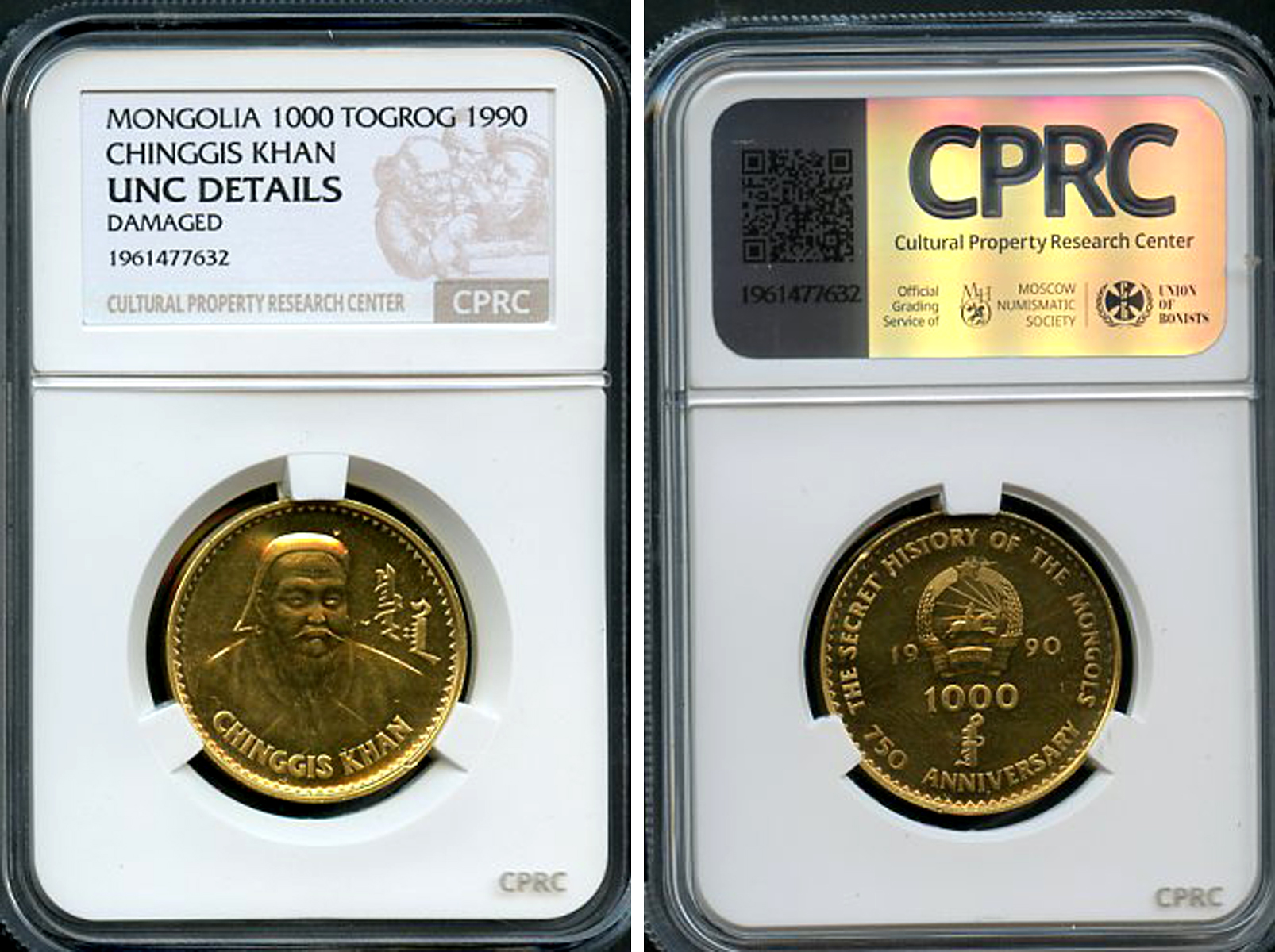 Монголия 1000 тугриков 1990 Чингисхан, тайная история, в слабе CPRC сохранность UNC DETAILS KM 56 золото UNC 15-004-17