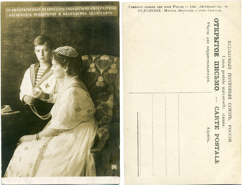 РОССИЯ ОТКРЫТОЕ ПИСЬМО РУССКАЯ ИМПЕРАТРИЦА АЛЕКСАНДРА ФЕДОРОВНА И НАСЛЕДНИК ЦЕСАРЕВИЧ АЛЕКСЕЙ НИКОЛАЕВИЧ 2193-7