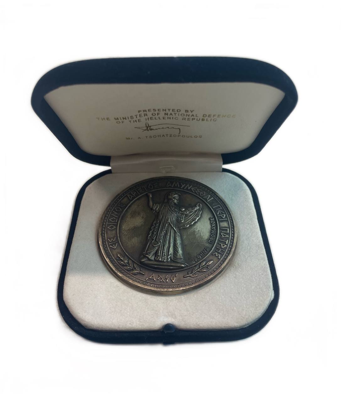 Греция медаль "Министерства национальной обороны Греции" ND Афина Промахос, автор Михалас, вес 155,1 гр, диаметр 70 мм, в оригинальном футляре серебро 8-2-04-40
