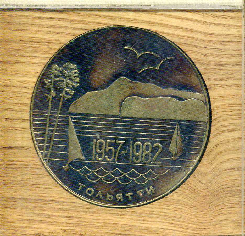 СССР медаль "заводу Внииземмаш (Вниицеммаш) в Тольятти 25 лет 1982 диаметр 50 мм, вес 48,29 гр, в деревянной упаковке томпак 3-4-11-02