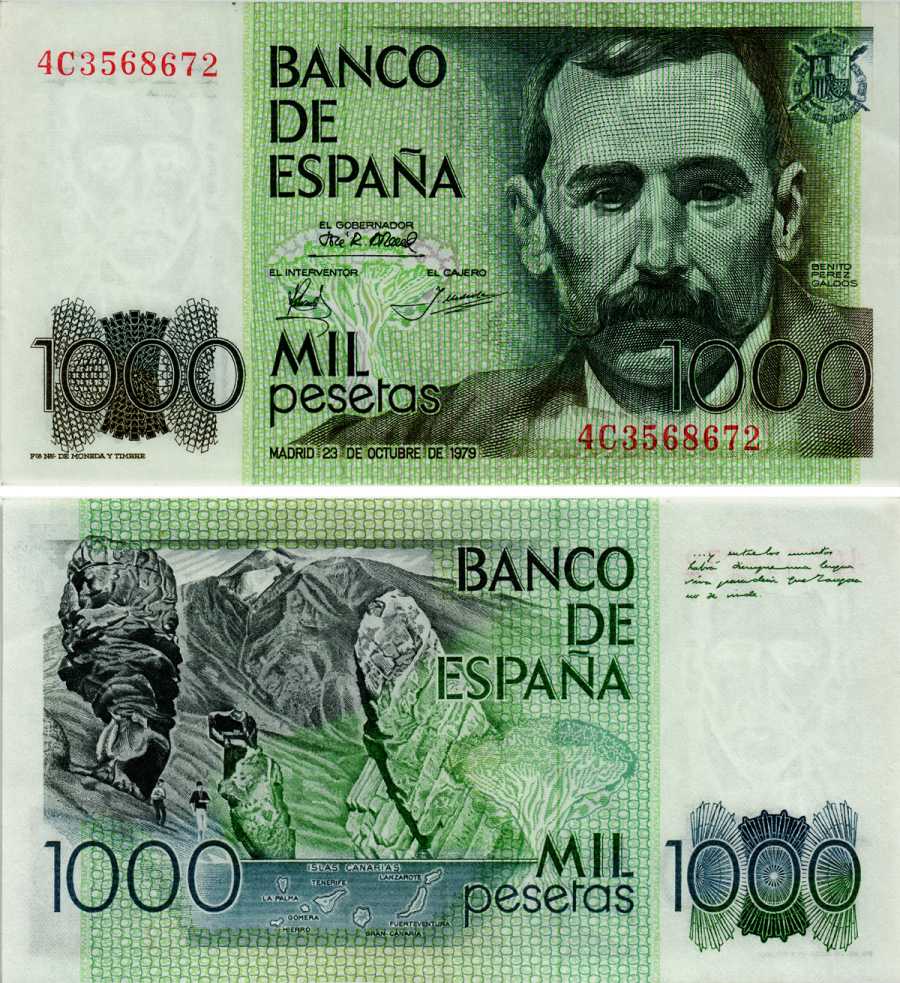 Испания 1000 Песет 1979 Бенито Перес Гальдос, Канарские острова Pick 158 бумага 6281-37-1-1