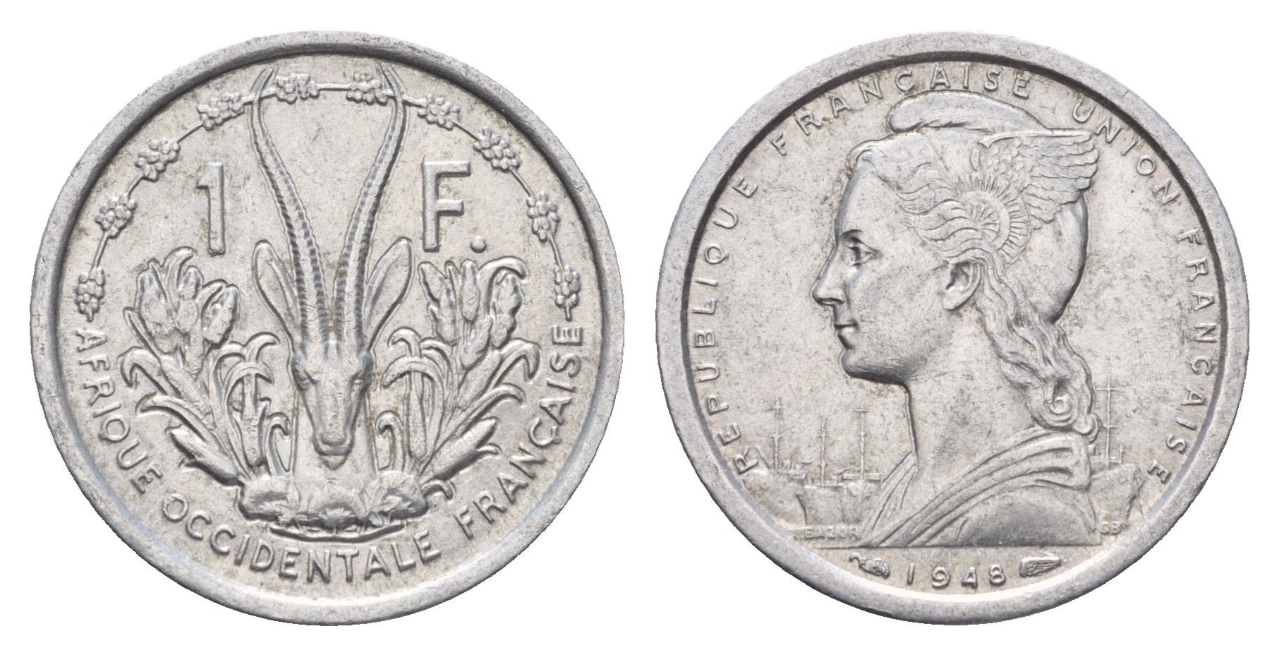 Французская Западная Африка 1 франк 1948 KM 3 алюминий 87-1211