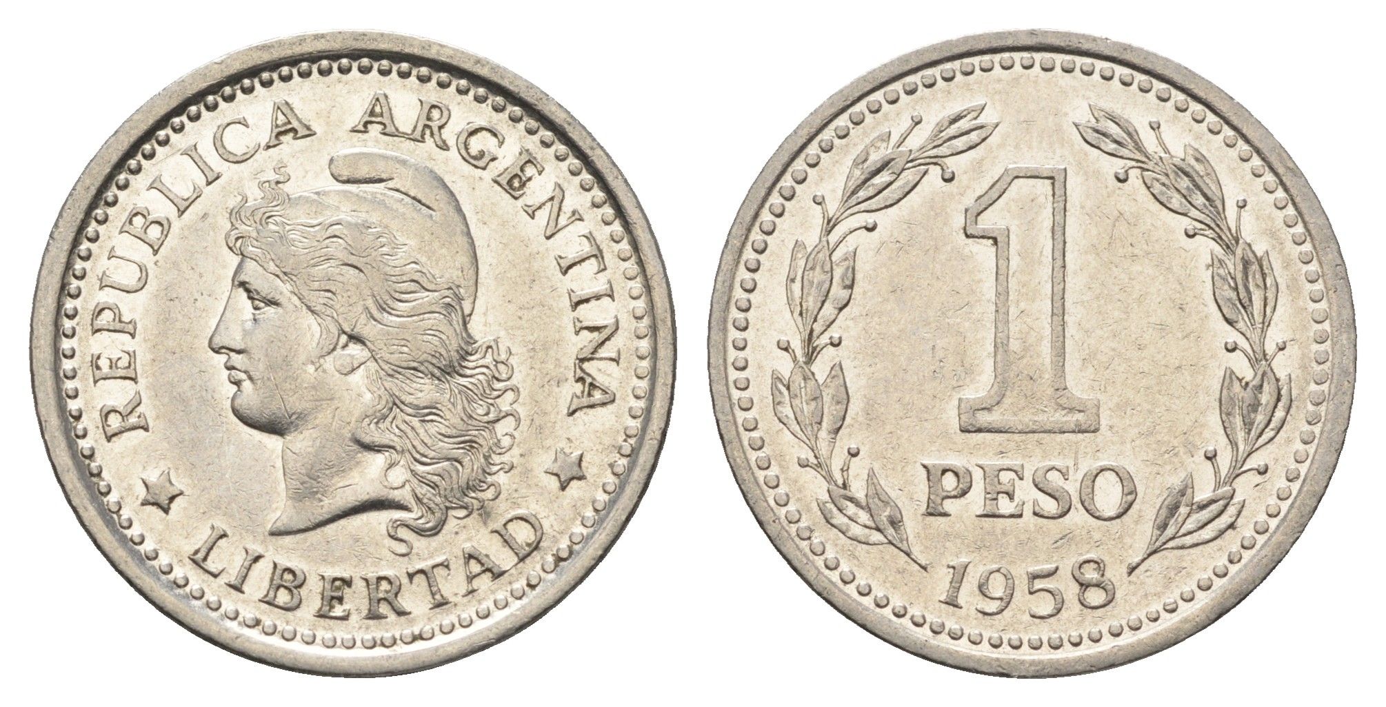 Аргентина 1 песо 1958 KM 57 сталь плакированная никелем 4663-625