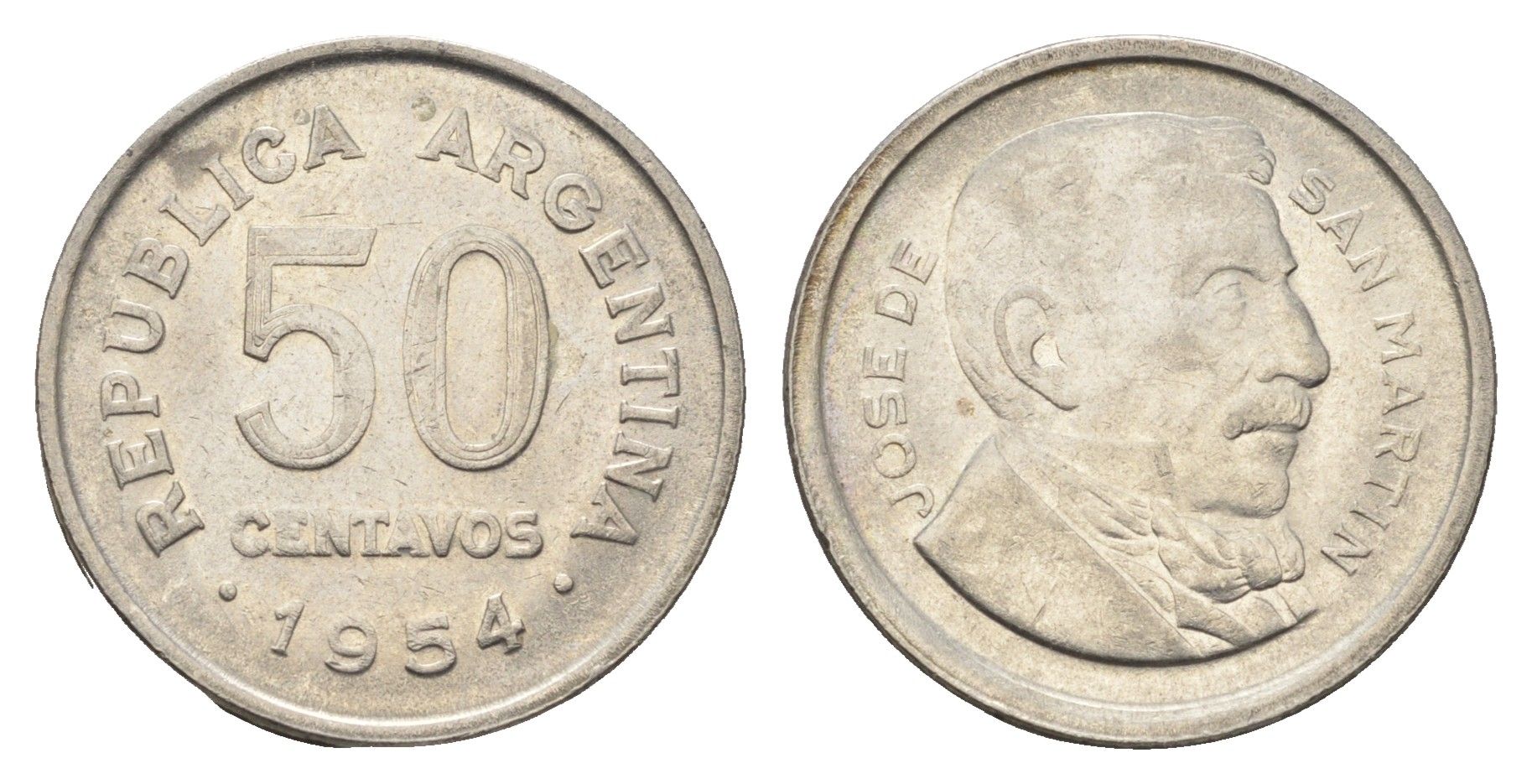 Аргентина 50 сентаво 1954 генерал Хосе де Сан Мартин KM 49 сталь плакированная никелем 4663-616