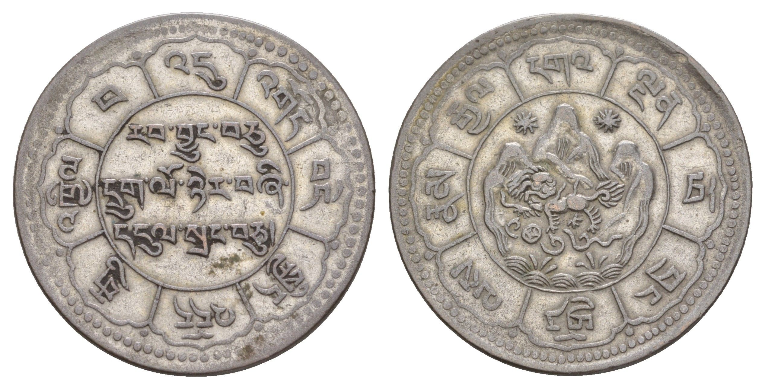 Тибет 10 шрангов 1950-1951 Y 30 серебро 00-801-43