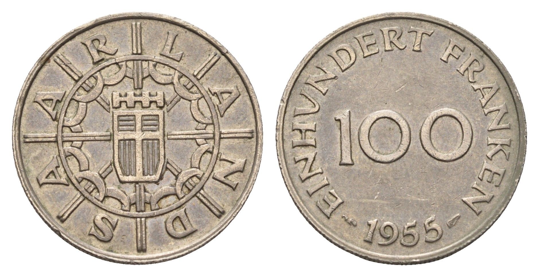 Саар 100 франков 1955 год-тип KM 4 медно-никель 77-435