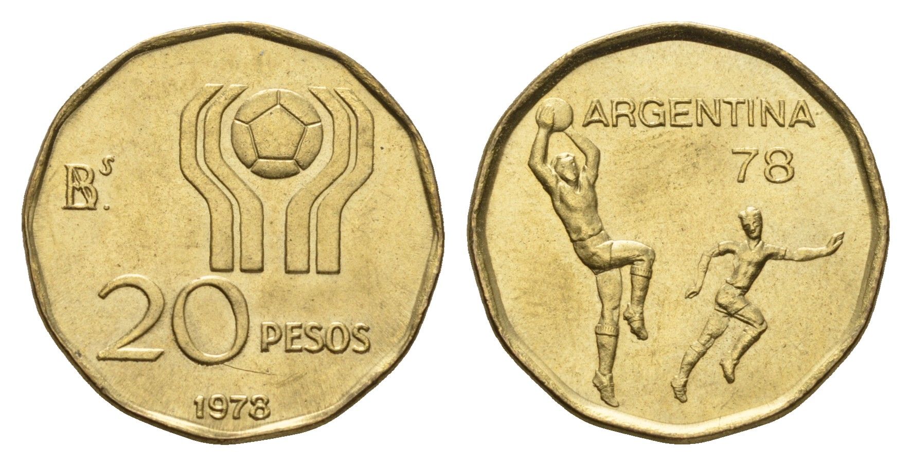 Аргентина 20 песо 1978 Чемпионат мира по футболу, Аргентина 1978 KM 75 алюминиевая бронза UNC 202-853