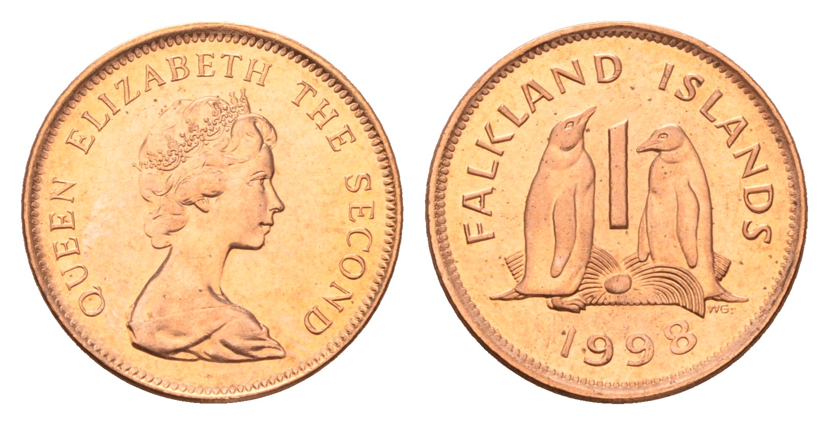 Фолклендские острова (Фолкленды) 1 пенни 1998 Елизавета II (1952-2022), папуанский пингвин KM 2a сталь плакированная медью UNC 3458-1213