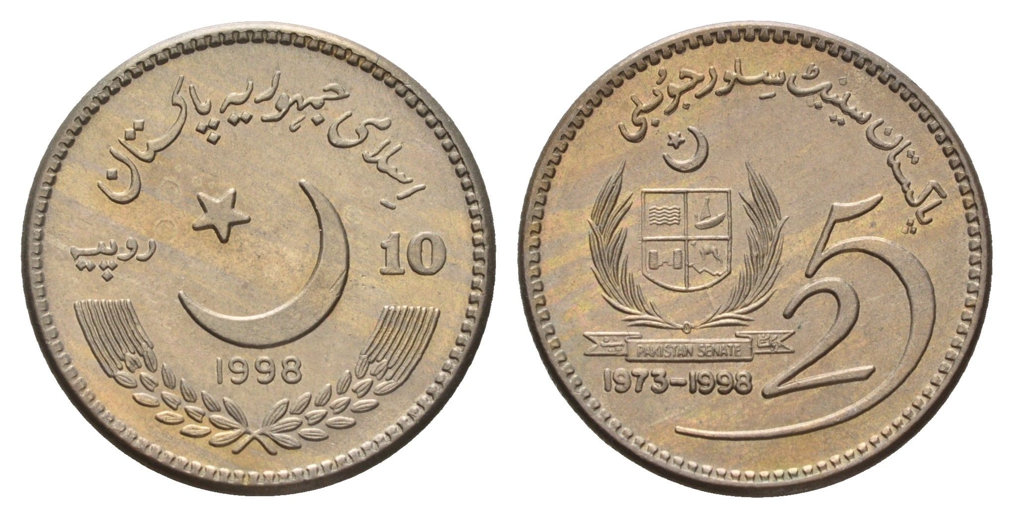 Пакистан 10 рупий 1998 25 лет Сенату Пакистана KM 61 медно-никель UNC 4652-1016