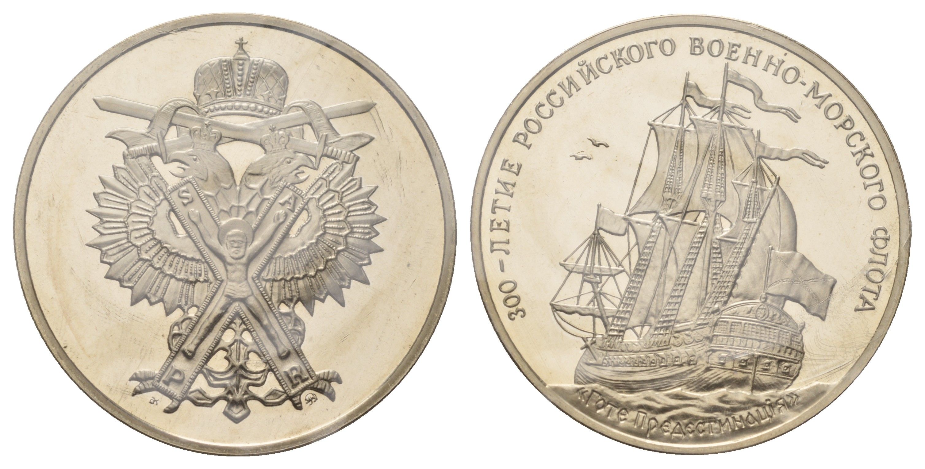 Россия медаль из серии "300 летие Российского флота - Гото Предестинация" 1996 в запайке, вес 23,8 гр, диаметр 39 мм медно-никель PROOF 01-235-51