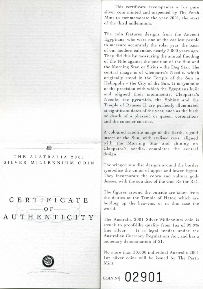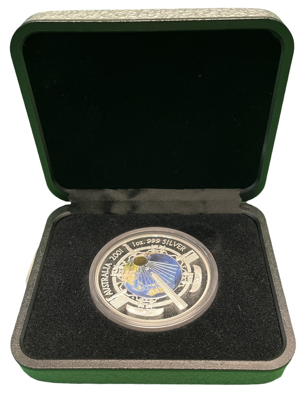 Австралия 1 доллар 2001 Миллениум, оригинальная монета с цветной эмалью, Египет, позолота KM 594 серебро PROOF 2-4-2-07