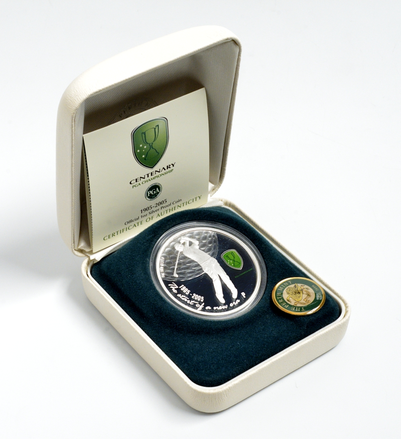 Австралия 1 доллар 2005 100 лет чемпионату мира по гольфу среди профессионалов (Professional Golfer's Association Championship), тираж 7500 экземпляров, в оригинальной коробке KM 831 серебро PROOF 8-1-05-09