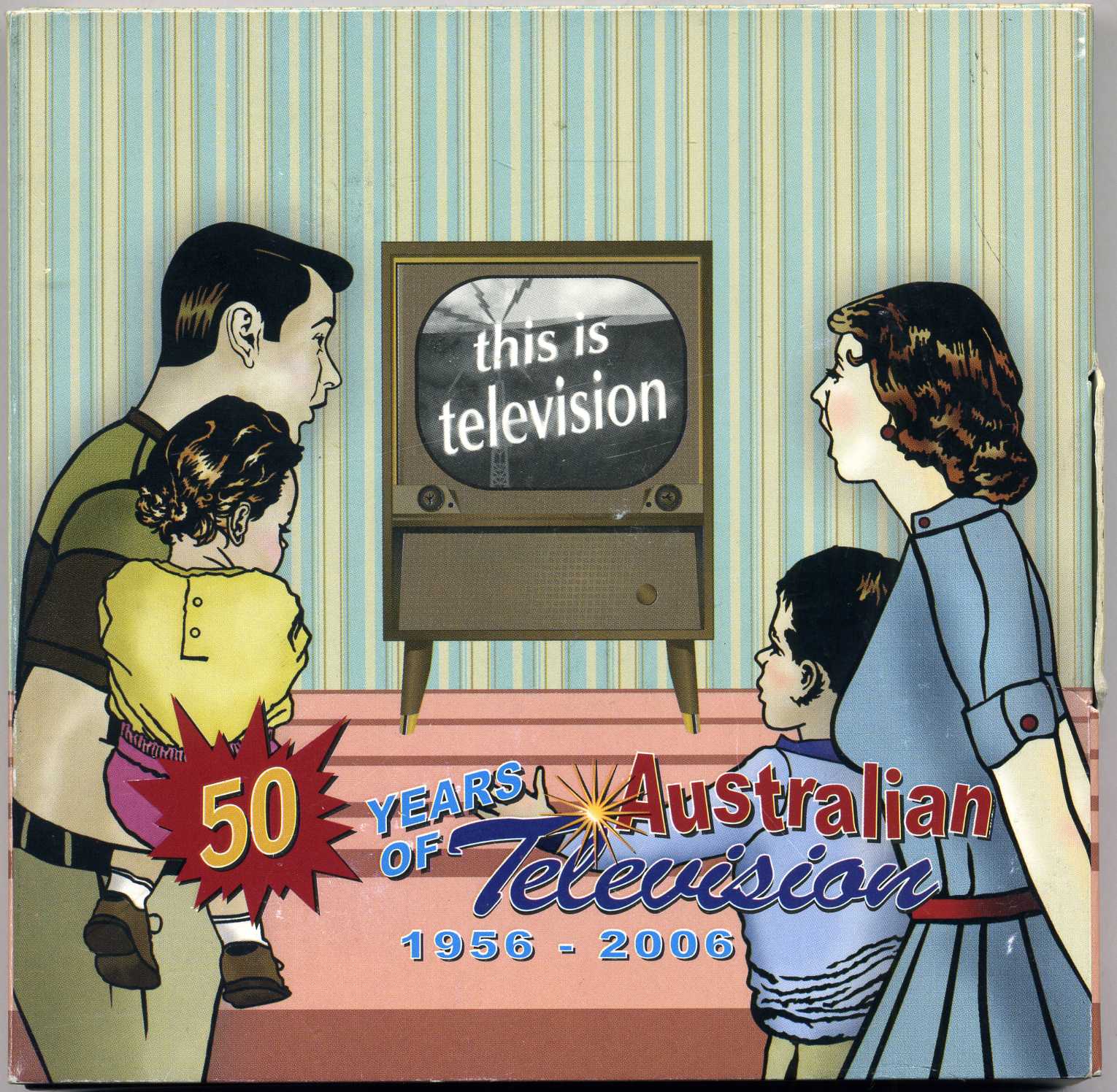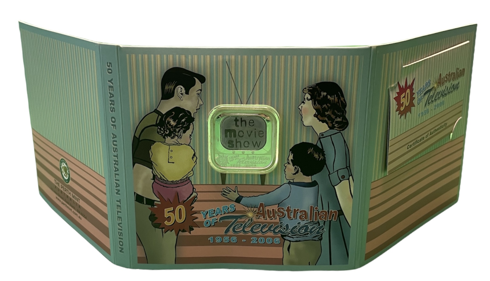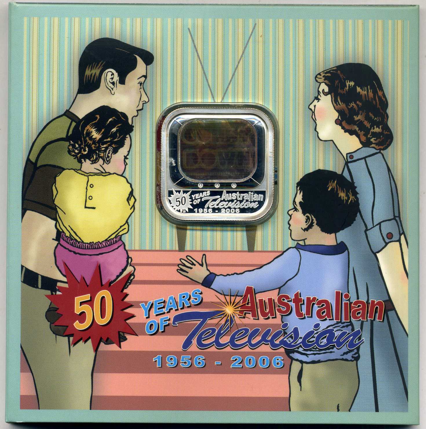 Австралия 1 доллар 2006 50 лет Австралийскому телевидению (цветное переливающееся избражение с 4 кадрами из разных передач, квадратное) серебро PROOF 5-6-1-34