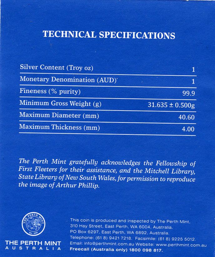 Австралия 1 доллар 2008 220 лет прибытию первого флота с поселенцами, адмирал Артур Филлип, эмаль серебро PROOF 8-1-05-08