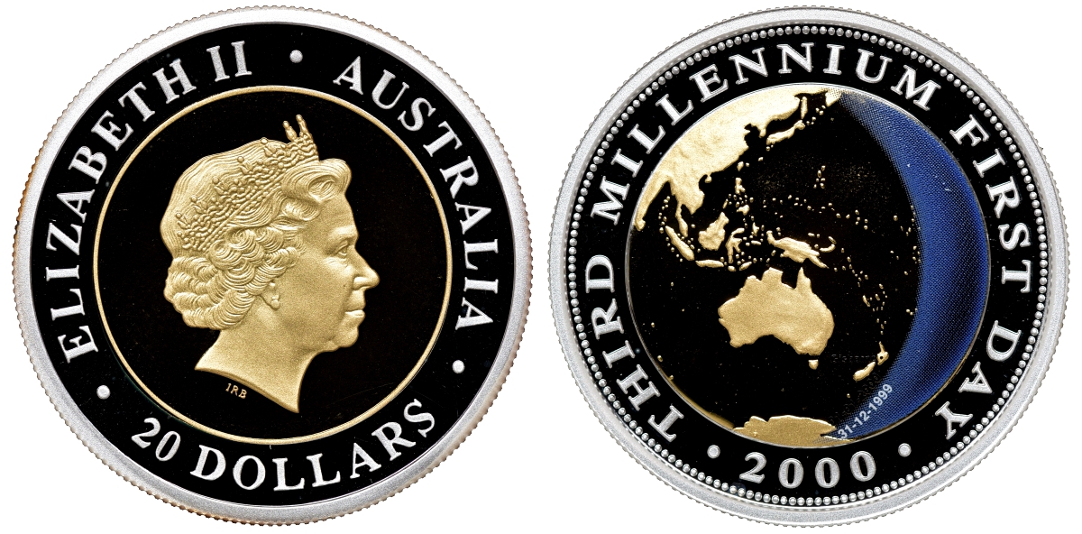 Австралия 20 долларов 2000 миллениум, земной шар KM 519 золото, серебро PROOF 2-4-2-01