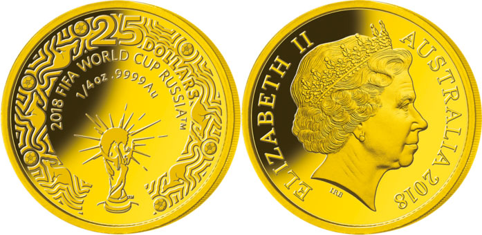 Австралия 25 долларов 2018 чемпионат мира по футболу в России KM NEW золото PROOF 10-014-12