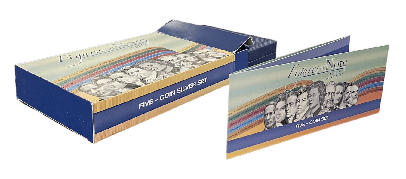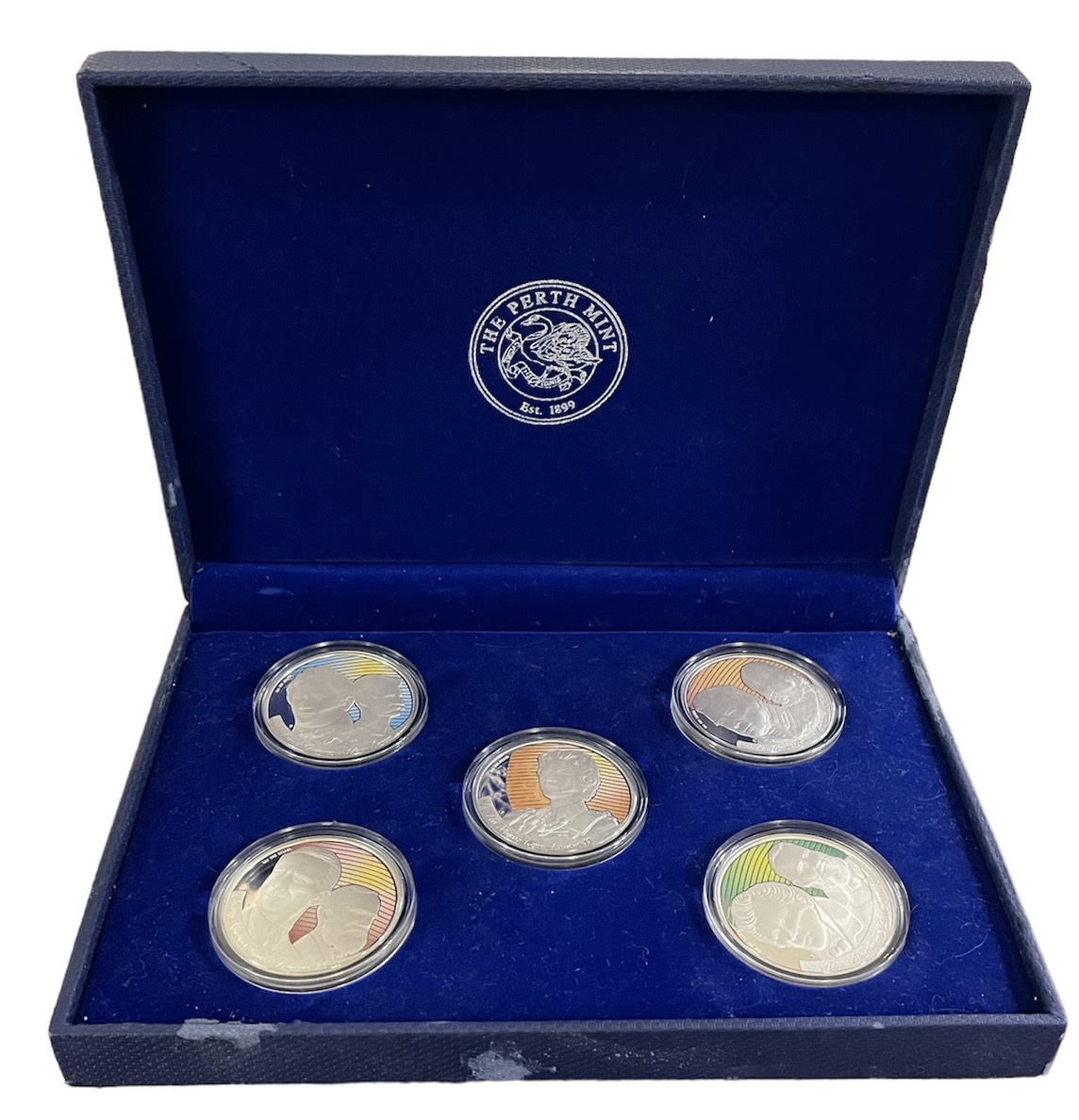 Австралия набор из 5 монет по 1 доллару 2006 лица на банкнотах, красочный набор, с сертификатом, серебро PROOF 1-4-6-06