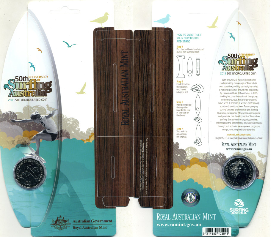 Австралия 50 центов 2013 50 лет виндсерфингу в Австралии, в оригинальном картонном буклете-трансформере KM NEW, медно-никель 4-5-2-13