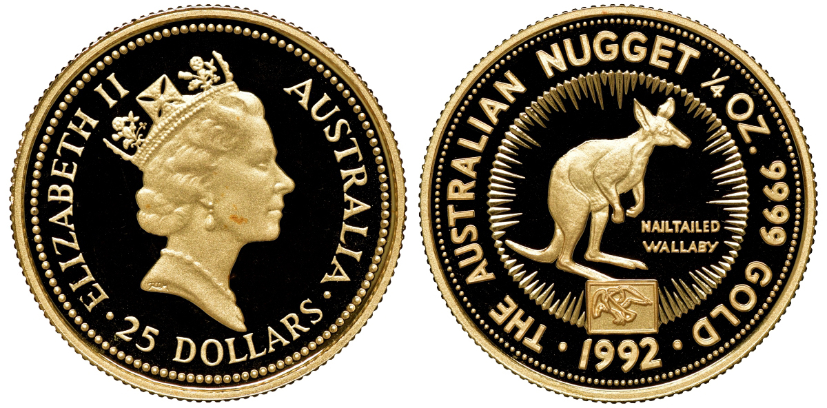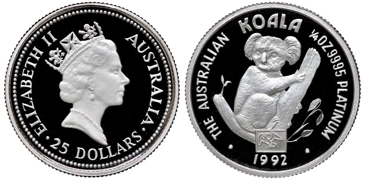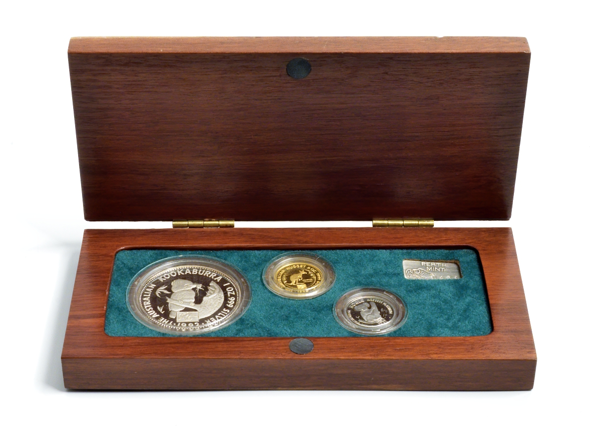 Австралия набор из 3 монет 1 доллар, 25 долларов, 25 долларов 1992 животные Австралии, тираж 750 экз № 0431 серебро, золото, платина 4-3-5-28