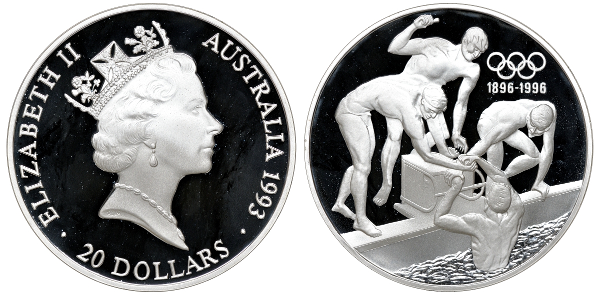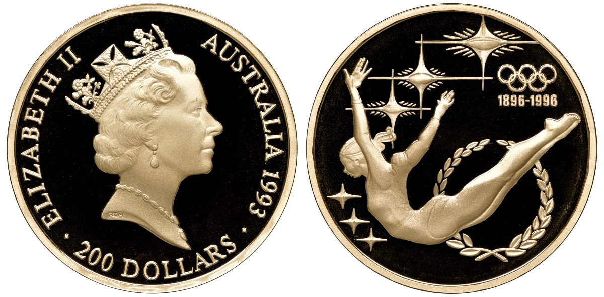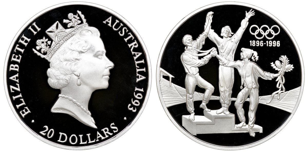 Австралия набор из 3 монет - 200 долларов и 2 по 20 долларов 1993 100 лет Олимпийскому движению KM 218, 219, 220 золото, серебро PROOF 4-3-4-16